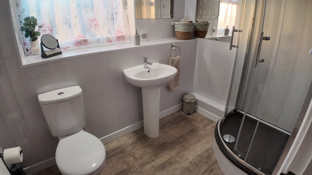 Configured over 2 floors, this modern spacious home offers ample parking space with two bathrooms and two en-suites. The ground floor offers a large bedroom, WC, Living and dining space plus kitchen and utility area.